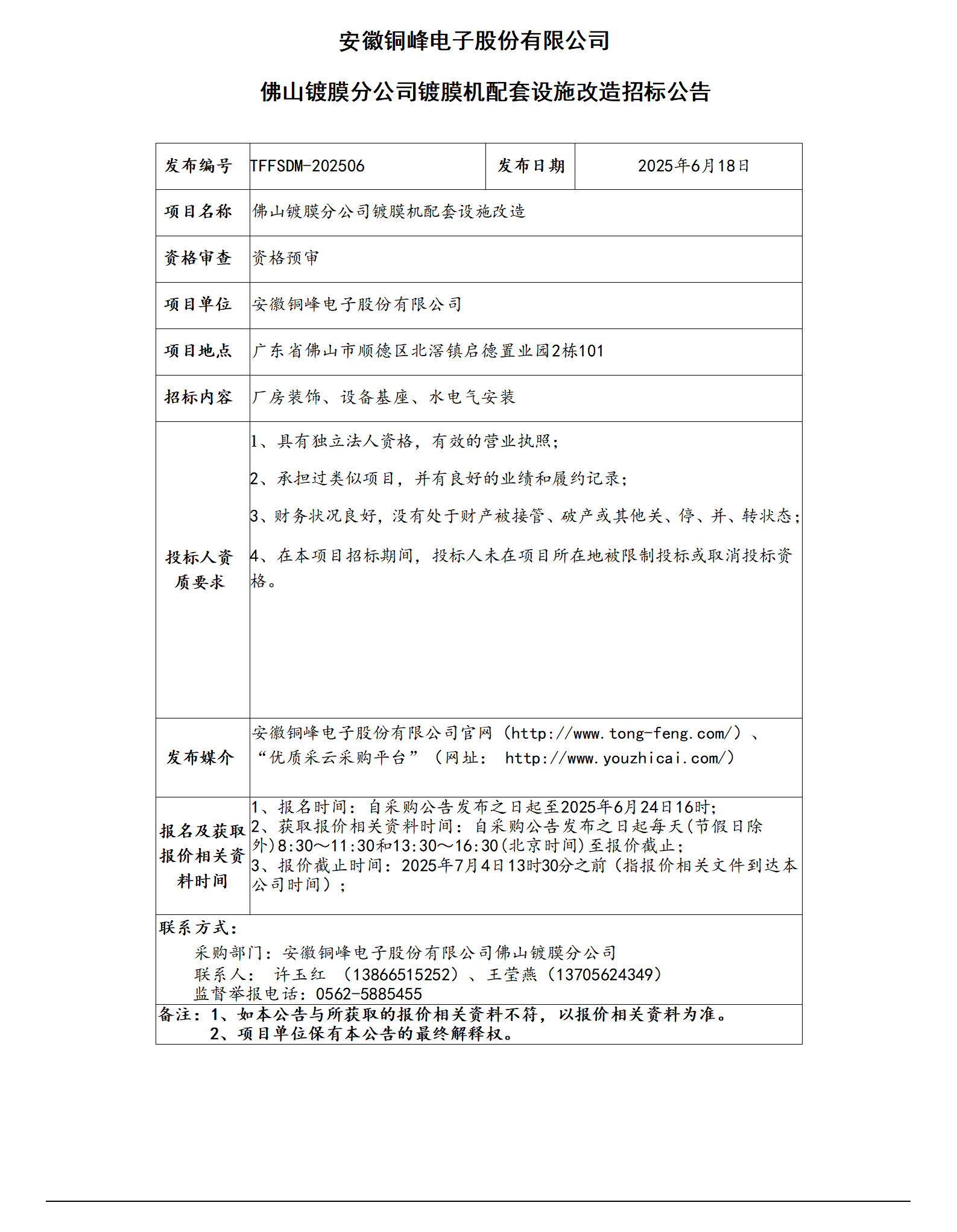 佛山鍍膜分公司鍍膜機配套設(shè)施改造招標公告_01