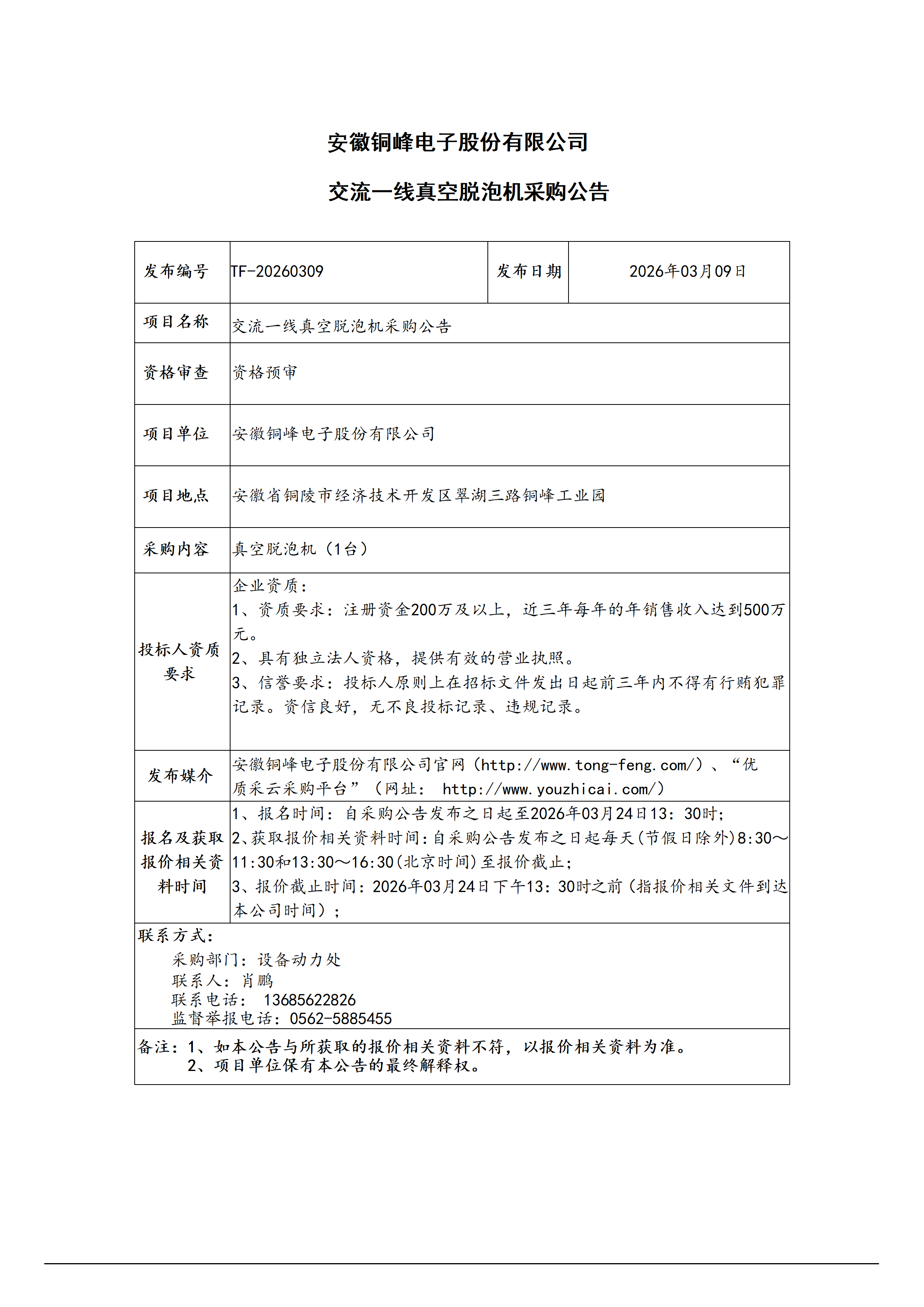安徽銅峰電子股份有限公司 (新一線電動(dòng)登高車采購招標(biāo)公告)_01
