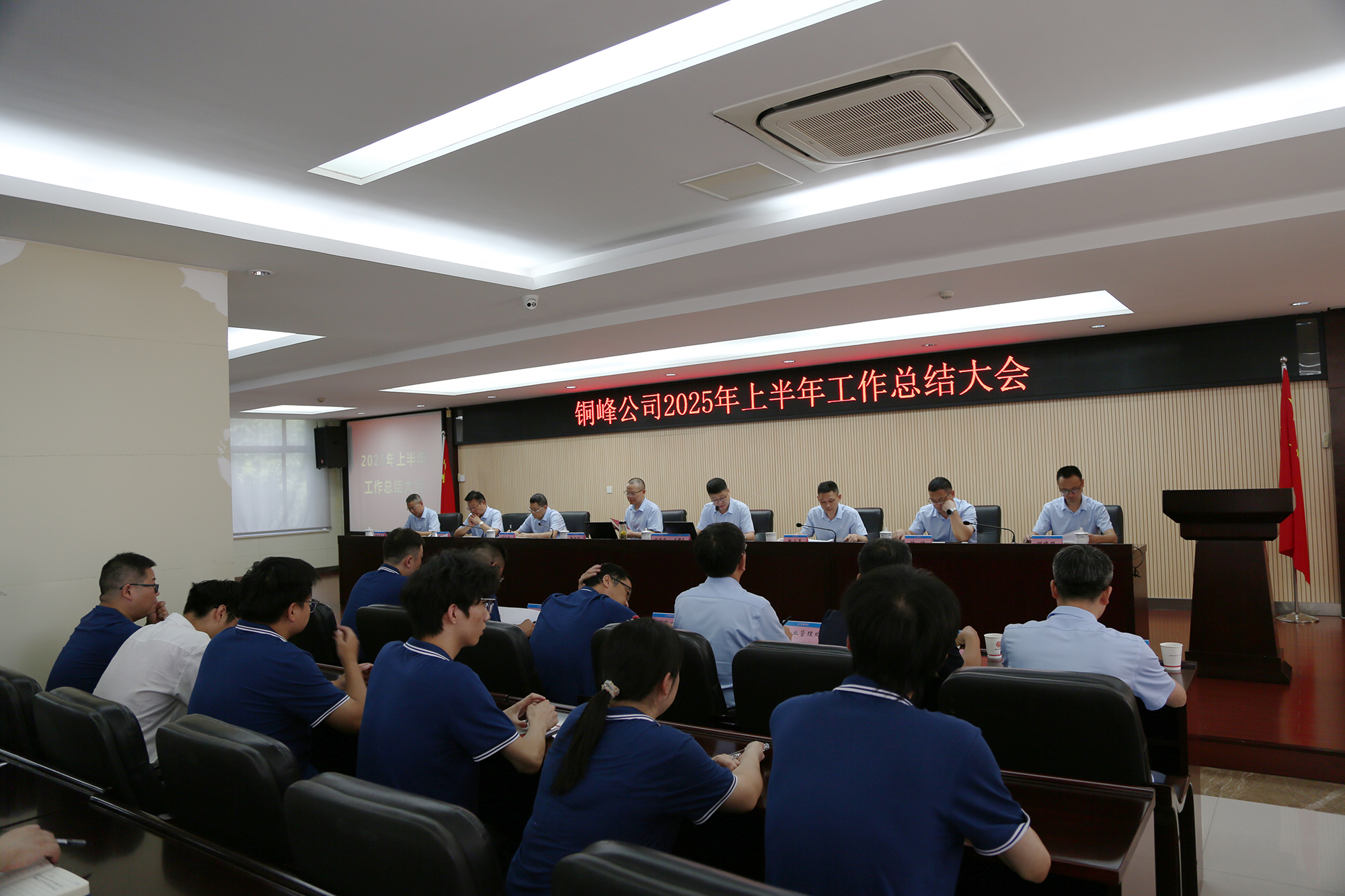 8月8日下午,公司在辦公樓二樓職教室隆重召開2025年上半年工作總結(jié)大會。公司黨政領導班子成員、各生產(chǎn)經(jīng)營單位車間主任和職能部門主管級以上人員、部分職工代表和新進大學生代表等參加會議。會議認真復盤上半年運營成果,深入分析當前經(jīng)營形勢,精心謀劃下半年重點工作。公司黨委書記、董事長黃明強出席會議并作總結(jié)講話,對公司上半年工作進行總體分析,對下半年工作提出要求。總經(jīng)理鮑俊華主持會議,并對公司各單位和部門的具體工作進行點評。公司各生產(chǎn)單位和相關(guān)職能部門分別匯報了上半年主要工作及下半年工作計劃。